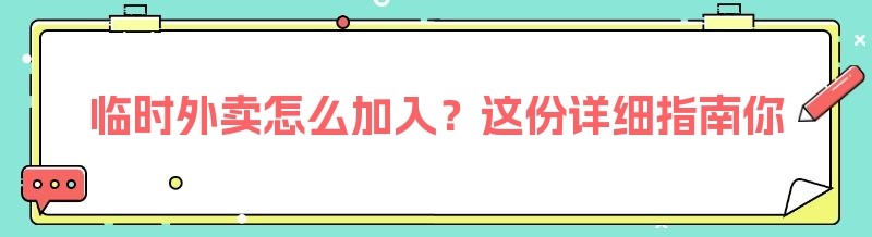 临时外卖怎么加入?这份详细指南你值得拥有!