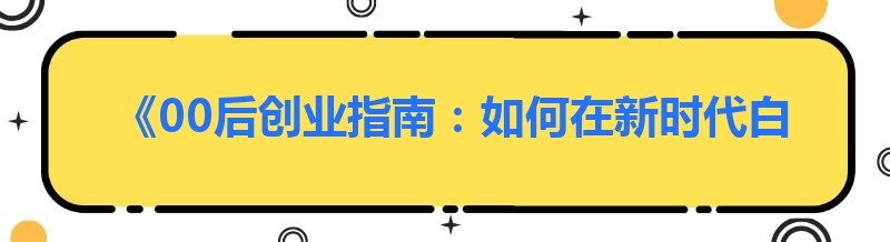 《00后创业指南:如何在新时代白手起家》