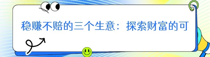 稳赚不赔的三个生意:探索财富的可靠路径