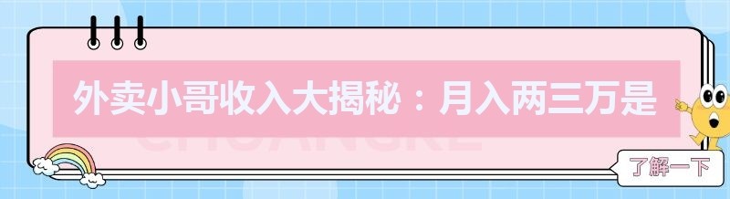 在当今社会,外卖行业如雨后春笋般蓬勃发展,外卖小哥的身影穿梭在城市的大街小巷。于是,关于外卖小哥收入的各种说法也应运而生,其中最引人注目的便是“送外卖一个月可以挣两三万”。那么,这究竟是真实存在的情况,还是仅仅是一种传说呢?
