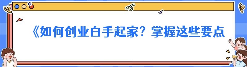 《如何创业白手起家?掌握这些要点很关键》