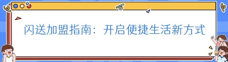 闪送加盟指南:开启便捷生活新方式