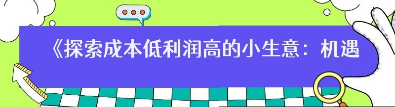 《探索成本低利润高的小生意:机遇与挑战并存》