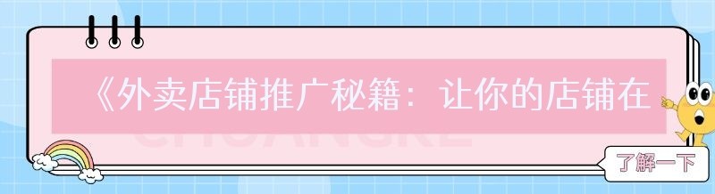《外卖店铺推广秘籍:让你的店铺在平台上脱颖而出》
