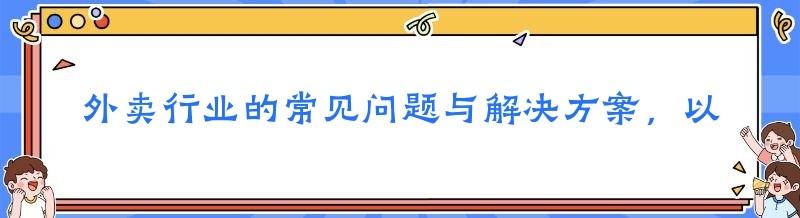 外卖行业的常见问题与解决方案,以及如何打造自己的外卖平台