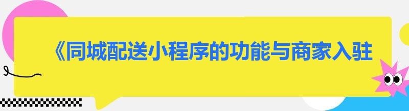 《同城配送小程序的功能与商家入驻的好处》