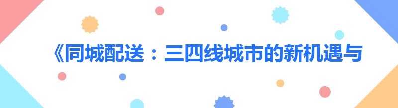 《同城配送:三四线城市的新机遇与注意要点》