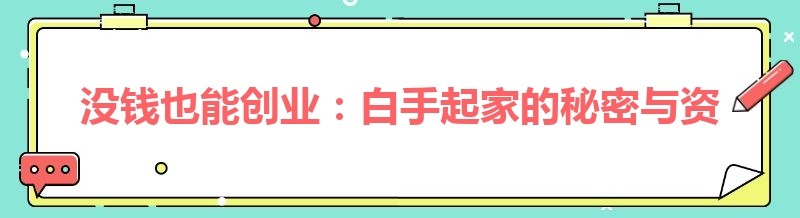 在创业的道路上,许多人都怀揣着梦想,但往往被“没钱”这个现实问题所困扰。然而,历史上有无数成功的创业者都是白手起家,他们凭借着智慧、勇气和独特的眼光,在没有大量资金的情况下,创造了属于自己的商业帝国。那么,白手起家如何选择创业项目?没钱又该如何创业?怎样才能筹集到资金呢?本文将为你一一揭晓答案。