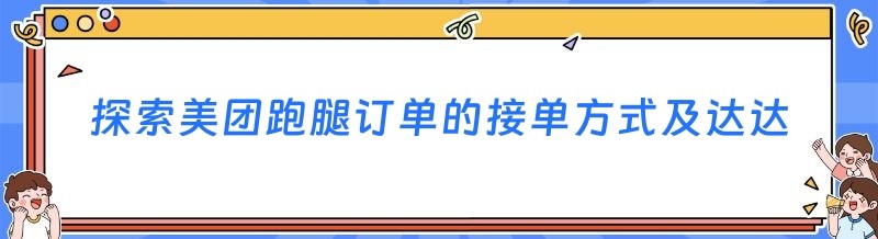 探索美团跑腿订单的接单方式及达达配送的奥秘