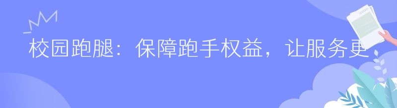 在大学校园里,校园跑腿服务如同一股便捷的春风,为广大师生带来了诸多便利。无论是取快递、送文件,还是帮忙买饭、代取物品,校园跑腿人总是忙碌在校园的各个角落。然而,在这看似繁荣的背后,校园跑腿人的权益保障问题却逐渐凸显出来。那么,如何才能更好地保障校园跑腿人的权益呢?让我们一起深入探讨。