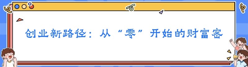 创业新路径:从“零”开始的财富密码