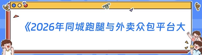 《2026年同城跑腿与外卖众包平台大揭秘》