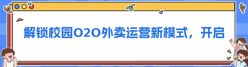 解锁校园O2O外卖运营新模式,开启校园O2O业务新篇章