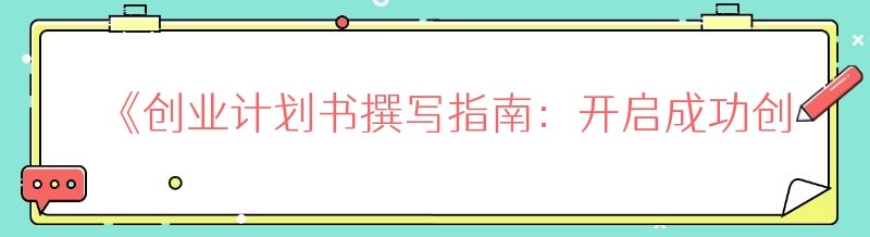 编辑 《创业计划书撰写指南:开启成功创业之旅》