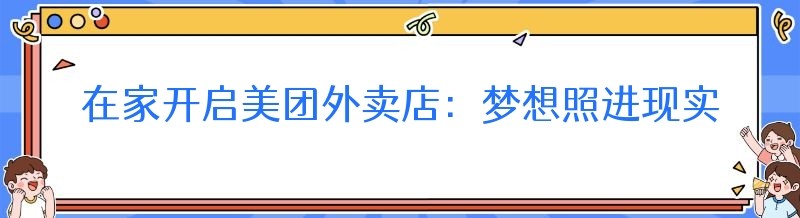 在当今数字化时代,外卖行业蓬勃发展,为许多有创业梦想的人提供了广阔的舞台。对于那些希望在家中开展美团外卖店的人来说,这不仅是一种实现创业理想的方式,还能兼顾家庭与事业。那么,外卖店真的可以在自己家开吗?又该如何在家里成功打造一家美团外卖店呢?