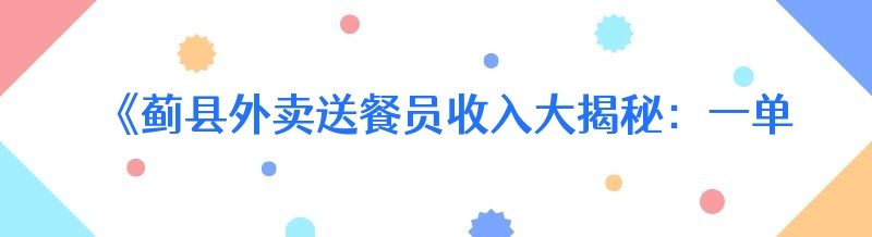《蓟县外卖送餐员收入大揭秘:一单能挣多少钱?》