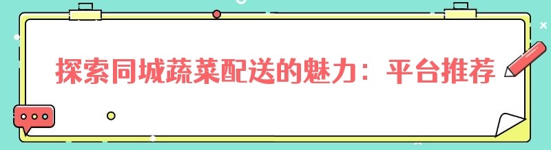 探索同城蔬菜配送的魅力:平台推荐与好处解析