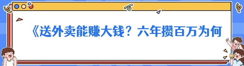 《送外卖能赚大钱?六年攒百万为何遭质疑》