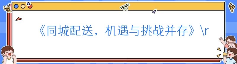 《同城配送,机遇与挑战并存》