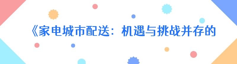 《家电城市配送:机遇与挑战并存的行业》