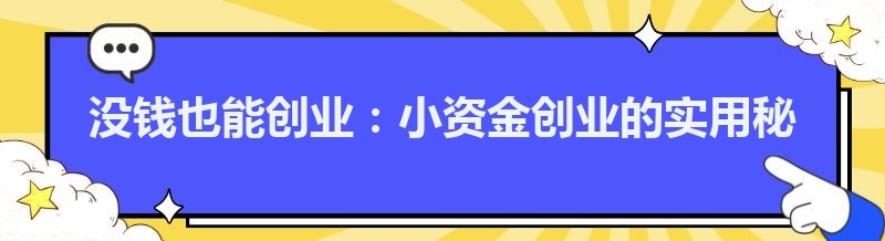 创业,这个充满魅力与挑战的词汇,一直以来都吸引着无数怀揣梦想的人。然而,对于许多穷人来说,创业似乎是一个遥不可及的梦想,因为他们缺乏创业所需的本钱。难道没有钱就真的无法创业吗?答案是否定的。在当今社会,有许多小资金创业的方法和途径,只要你有创意、有决心、有努力,就有可能实现自己的创业梦想。本文将为你介绍一些小资金创业的实用秘籍,帮助你在创业的道路上迈出坚实的第一步。