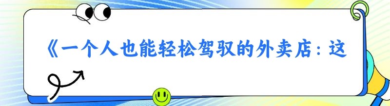 《一个人也能轻松驾驭的外卖店:这些美食项目不容错过》