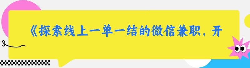 《探索线上一单一结的微信兼职,开启财富新通道》