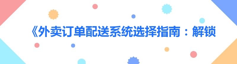 《外卖订单配送系统选择指南:解锁高效配送的关键》