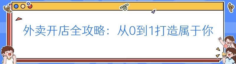 外卖开店全攻略:从0到1打造属于你的线上店铺