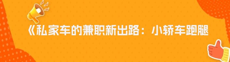 对于私家车车主来说,利用小轿车跑腿送货是一种不错的兼职方式。通过选择合适的跑腿送货软件,合理安排时间,注意安全和服务质量,就可以在不影响正常工作和生活的前提下,获得一笔额外的收入。如果你有一辆私家车,不妨试试这种兼职方式,让你的爱车为你创造更多的价值。