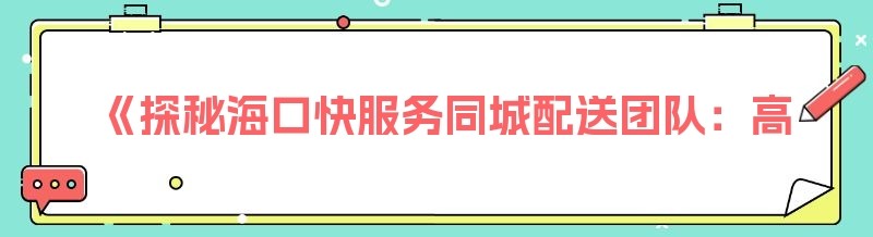 《探秘海口快服务同城配送团队:高效便捷的城市物流使者》