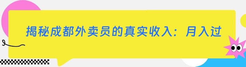 揭秘成都外卖员的真实收入:月入过万,是传说还是现实?