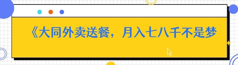 《大同外卖送餐,月入七八千不是梦?》