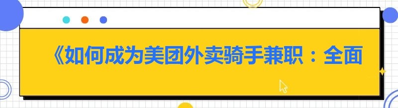 在当今社会,越来越多的人希望通过兼职来增加收入,而美团外卖骑手兼职成为了许多人的选择。那么,究竟如何才能成为一名美团外卖骑手兼职呢?下面就为大家详细介绍。