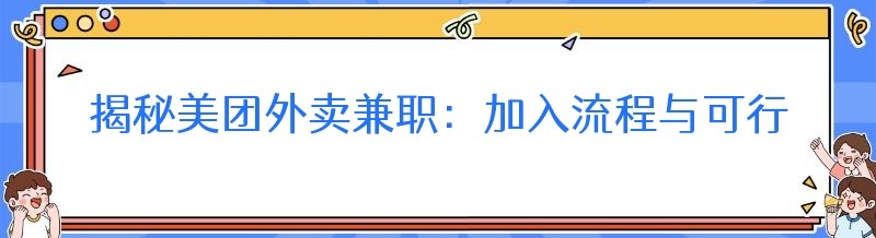 揭秘美团外卖兼职:加入流程与可行性全解析