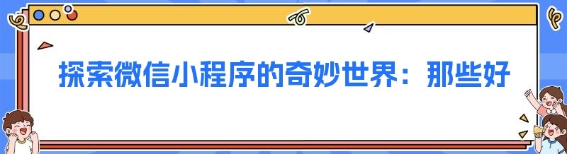探索微信小程序的奇妙世界:那些好用到爆的宝藏小程序