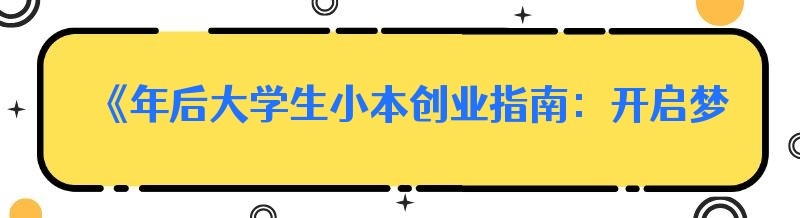 《年后大学生小本创业指南:开启梦想之旅》