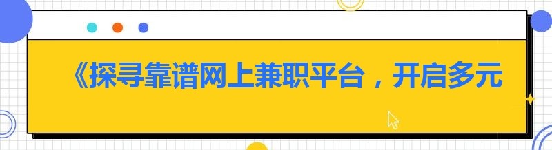 《探寻靠谱网上兼职平台,开启多元收入之旅》