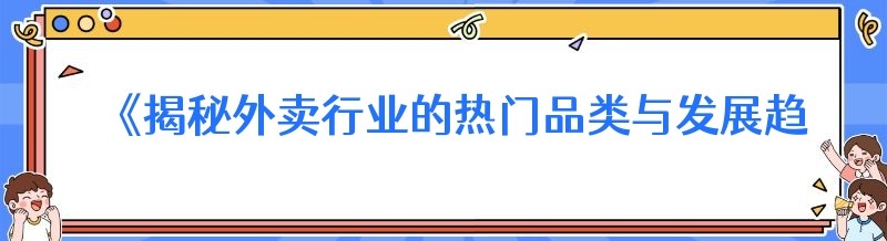 在这个快节奏的时代,外卖行业如同一颗璀璨的明星,闪耀在人们的生活中。它为人们提供了极大的便利,让大家足不出户就能品尝到各种美食。那么,外卖行业最火的是什么?哪个品类最受欢迎呢?让我们一同来揭开这个神秘的面纱。