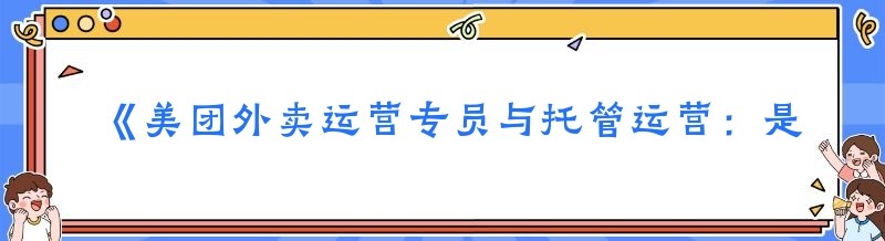 《美团外卖运营专员与托管运营:是否真的有用?》