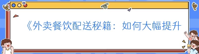 《外卖餐饮配送秘籍:如何大幅提升流量与曝光量》