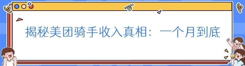 揭秘美团骑手收入真相:一个月到底能赚多少钱?