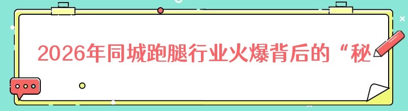2026年同城跑腿行业火爆背后的“秘密”