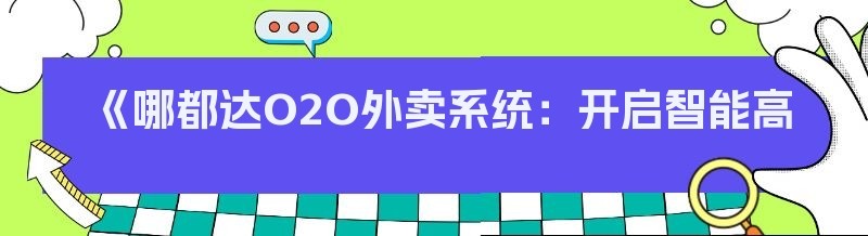 《哪都达O2O外卖系统:开启智能高效运营管理新时代》