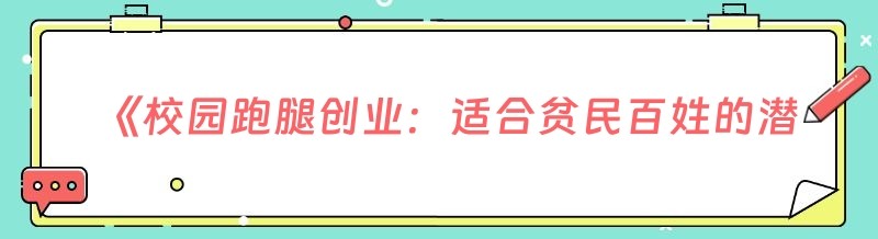 《校园跑腿创业:适合贫民百姓的潜力之选》