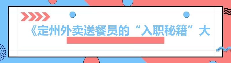 《定州外卖送餐员的“入职秘籍”大揭秘》