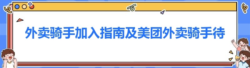 外卖骑手加入指南及美团外卖骑手待遇解析