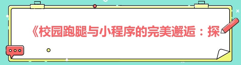 《校园跑腿与小程序的完美邂逅:探索便捷新生活》