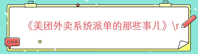 编辑 《美团外卖系统派单的那些事儿》