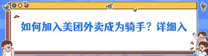 如何加入美团外卖成为骑手?详细入职流程全解析